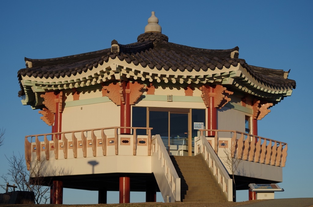 この場所からお隣の釜山は直線距離で約49.5km。当日は凍